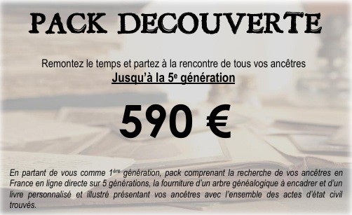 Parce que chaque recherche est particulière et unique, chaque demande fait l’objet d’un devis gratuit, détaillé et personnalisé, en fonction de vos attentes et des éléments que vous aurez fournis au préalable (livrets de famille, actes d’état civil…).